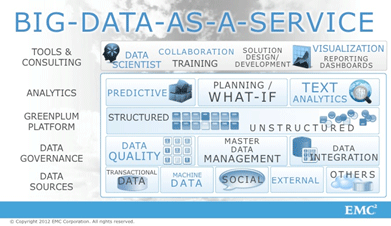 이로 인해 2013년 후반부터 서비스로서의 빅데이터(BDaaS: Big Data-as-a service) 공급 기업들의 흐름이 영향을 미치기 시작했습니다. BDaaS는 데이터의 저장, 분석, 해석 그리고 시각화 데이터라고 할 수 있는 전체 패키지에서부터 압축한 서비스에 이르기까지 어떤 것이든 중소기업들과 고용 계약을 맺고 진행합니다. 이러한 것들은 미래에 요구될 데이터의 접근 방법이 가능하도록 클라우드 기반 서버로의 데이터 전송에 초점이 맞춰져 있습니다.
