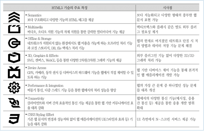 (자료출처 : 한국전자통신연구원, 'HTML5 기반의 웹 플랫폼 기술 표준화 동향') -