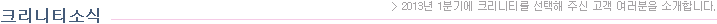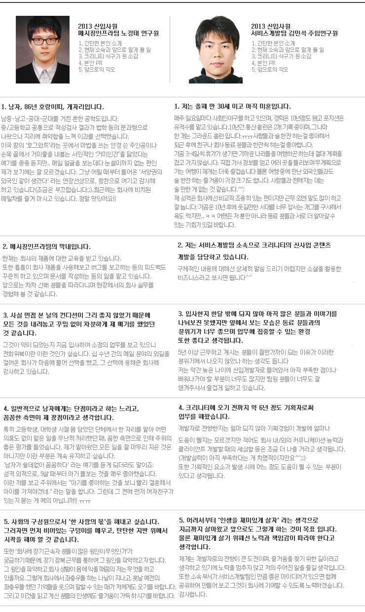 크리니티는 2013년 상반기 공채 채용을 통해 신규 인력을 채용했습니다.