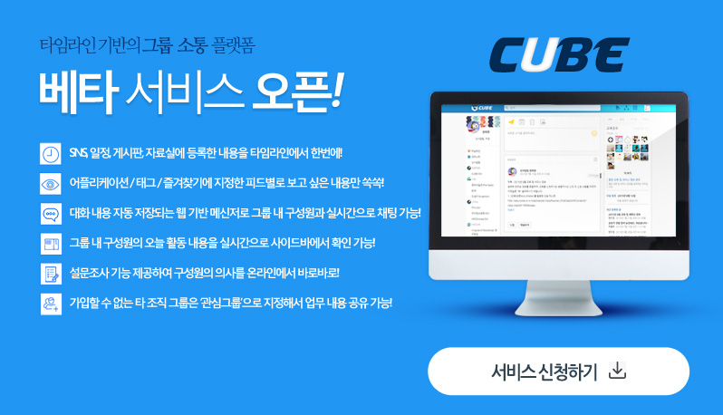 타임라인 기반의 그룹 소통 도구인 '큐브(CUBE)'의 베타 서비스가 출시되었습니다.