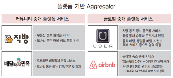 플랫폼 기반 애그리게이터, 직방과 배달의 민족