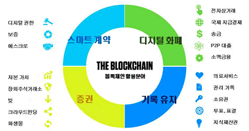 변조를 할 수 없는 블록체인을 이용하면 비용을 들이지 않고 높은 거래 신뢰도를 확보할 수 있습니다. 우리는 송금할 때, 상대방이 올바른 상대라는 것을 확인하고 지정된 정확한 금액 등 교환 안전성을 담보하려고 금융기관을 이용하며 금융기관에서는 거래 안전성을 담보하는 대신 중개 수수료를 취하게 됩니다. 하지만 블록체인은 변조가 불가능한 거래만 보장하는 가상화폐만 있으면 중간에 수수료가 필요 없습니다. 거래자끼리 가치, 그러니까 돈을 교환할 수 있는 것입니다. 이런 장점 때문에 주로 금융 분야를 중심으로 급성장하고 있습니다. 하지만 블록체인의 응용범위는 금융에 국한되는 게 아닙니다. 교환이 가능한 곳이라면 어디든 블록체인을 활용할 수 있습니다. 지금까지 수수료나 시간, 물리적 위치 등 거치적거리던 장애물이 사라진 새로운 가치와 서비스를 기대할 수 있는 것입니다.